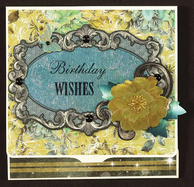 Punch out the label paper tole die-cuts and stamp “birthday wishes” on piece # Assemble the die-cuts following the package directions, placing foam tape between the layers. Foam tape the design centered on the upper front flap.