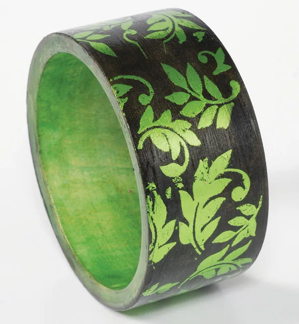 Use a cosmetic sponge to apply Green Apple Smooch® to the edges and inside of the bangle. Let dry.