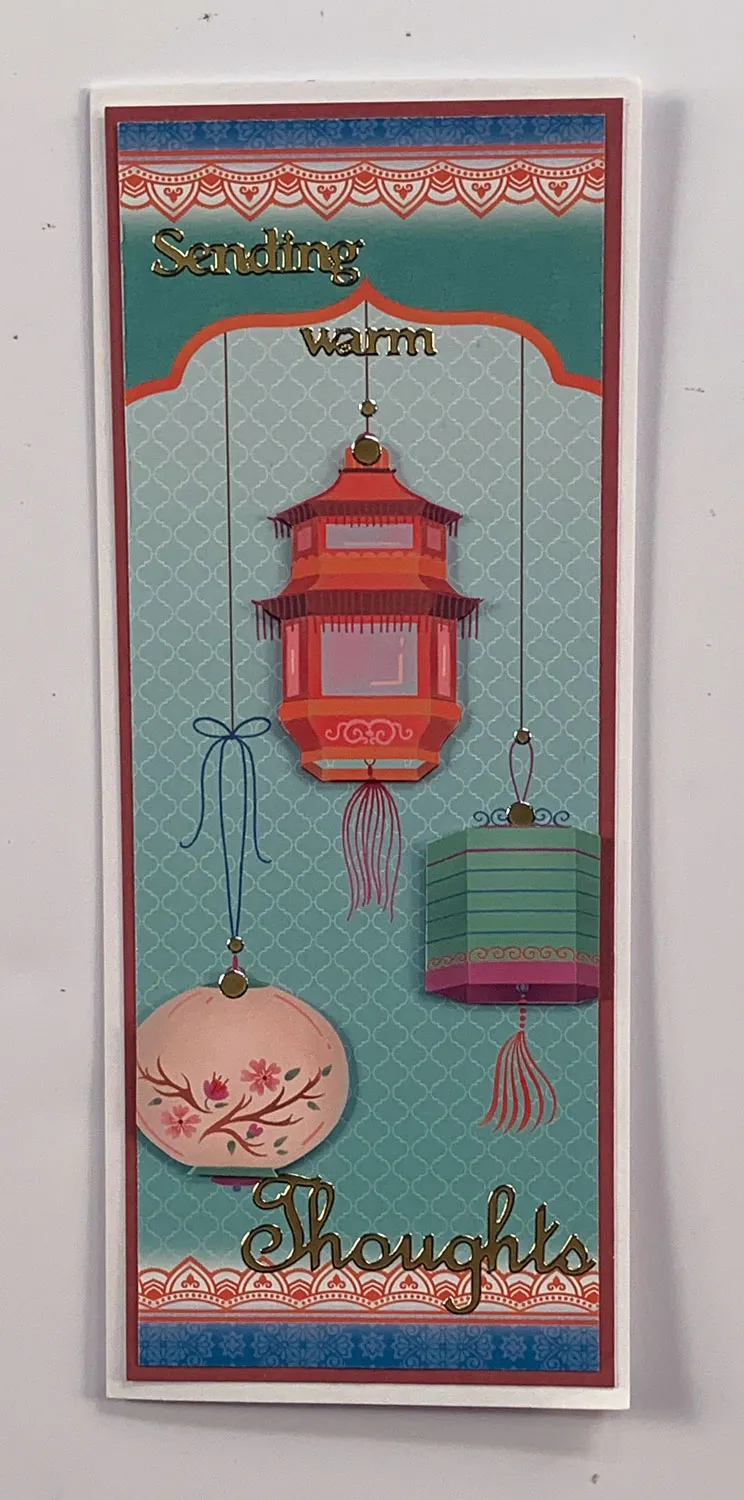 Cut out the lanterns from a duplicate paper and foam tape over the others. Place Brass Jewel Dazzles™ and Inside/Outside Dazzles™ as shown.