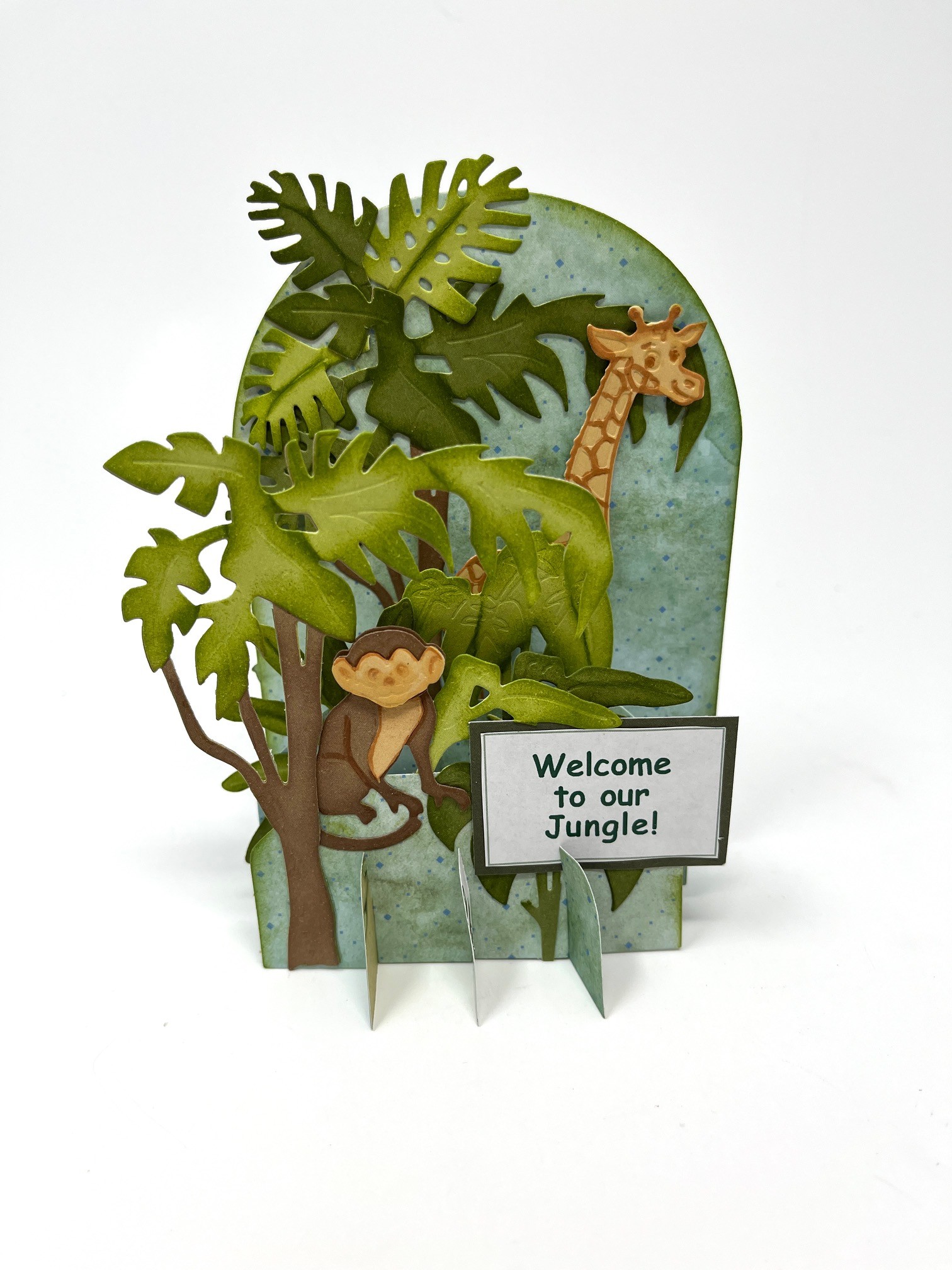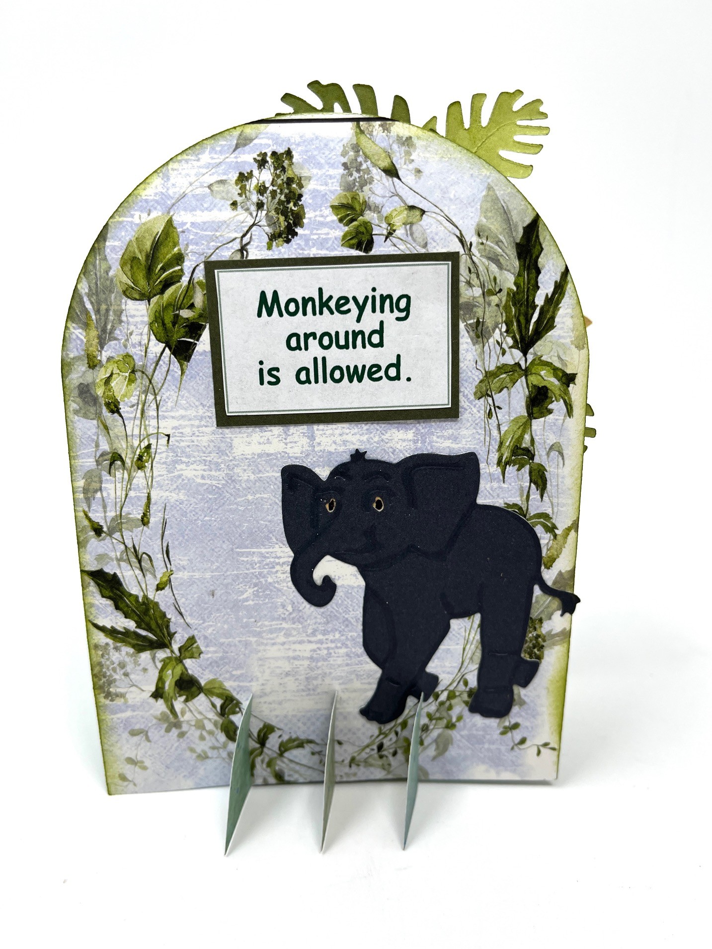 Monkey is paper pieced by cutting 2 monkeys, then cutting the belly & face apart to glue to the first piece. Then cutting a 3rd time and just cutting out the face to foam tape to the first monkey.