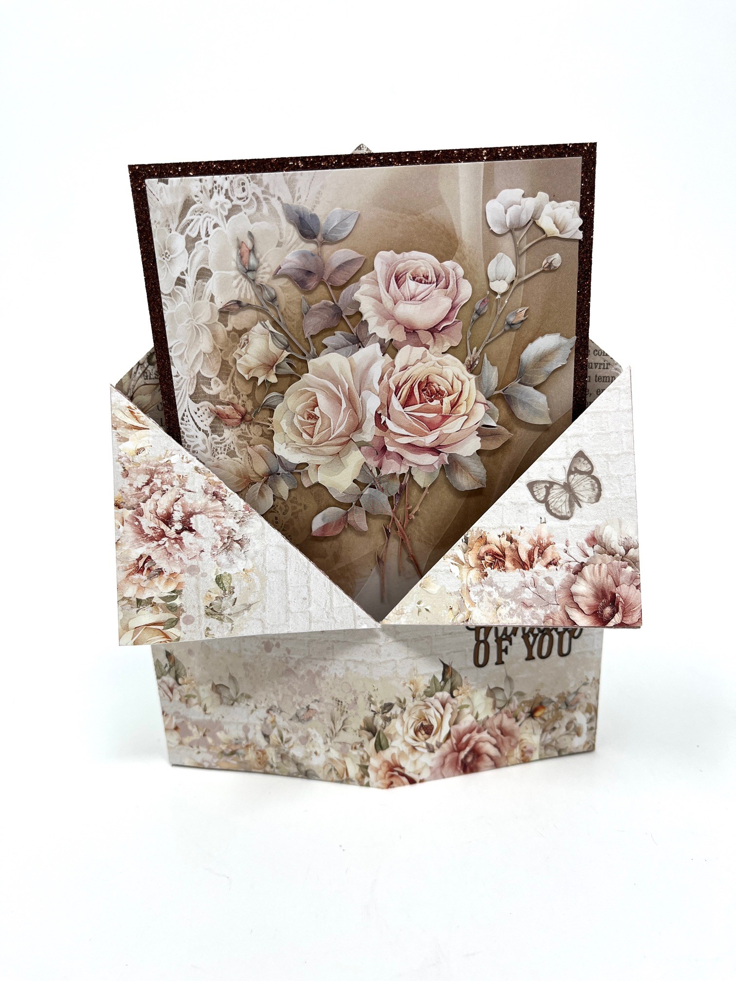 4. Remove the stems of flower laser cuts. Use Sticky Specs to attach the floral One Perfect Day laser cut to the card. Just lift up the backing sheet and place the laser cut on the sticky part. Press down then carefully lift up and position on your card. You can reuse the Sticky Specs many, many times.