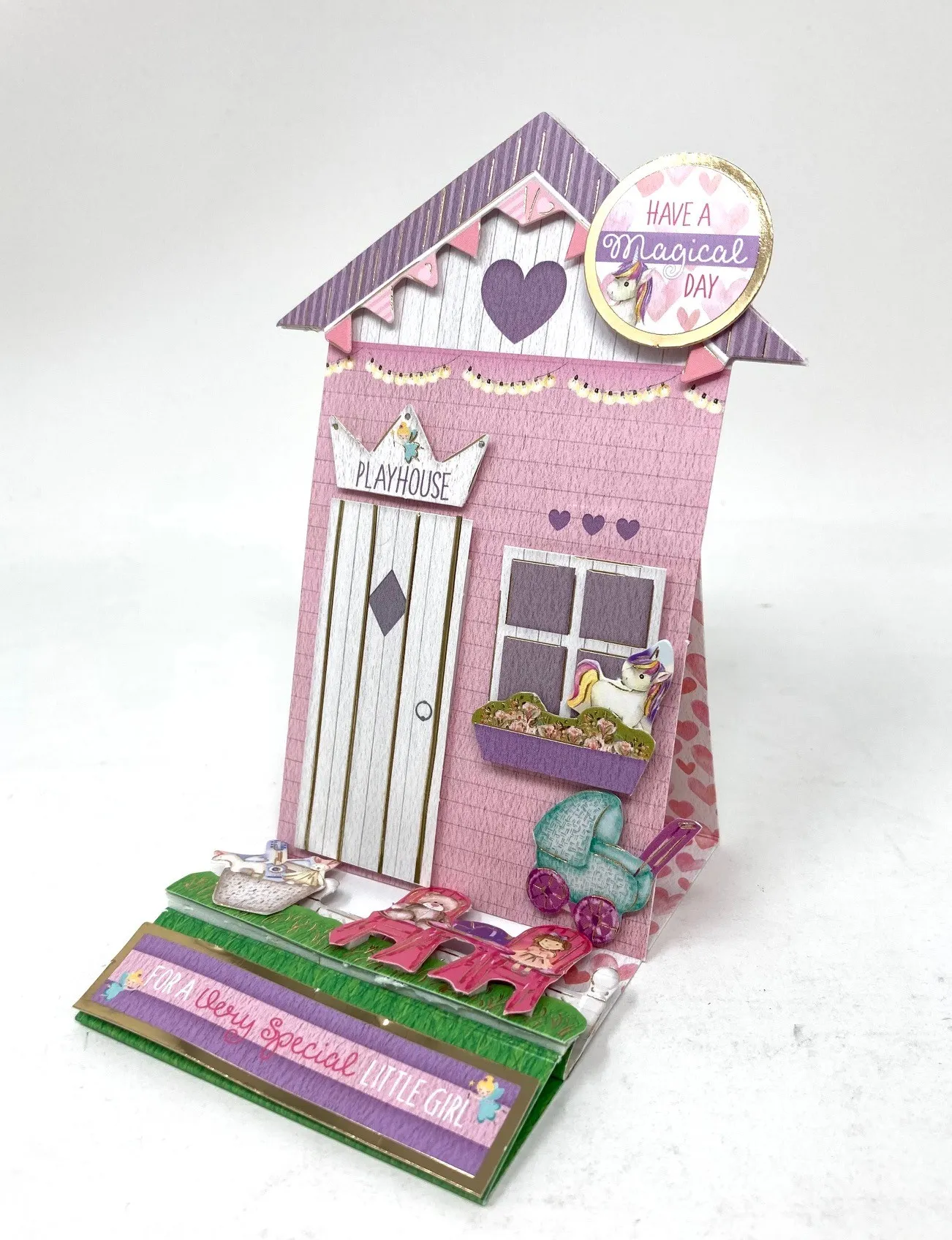Select and detach the house from the sheets in the #2 and #3 collection. Go over all score lines with a bone folder. Add extra sticky tape where specified on the instruction sheet. Construct the base as per the instruction sheet. Foam tape all elements until you’re satisfied with the look.