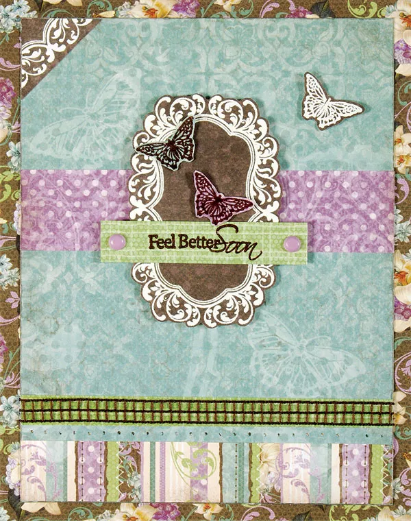 Emboss “Feel Better Soon” in brown on green paper and cut to 2 ½”x½”.