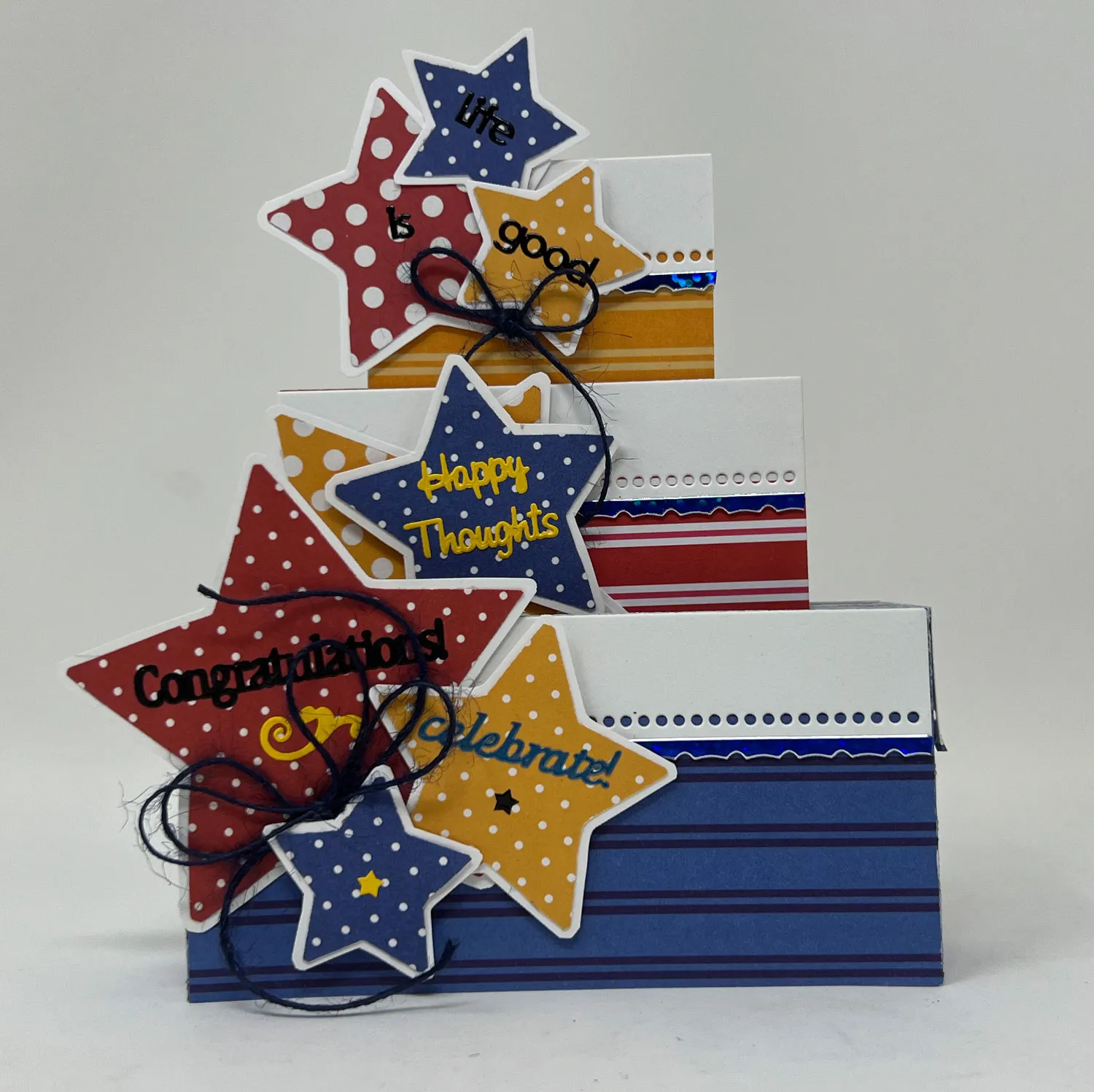 Designer’s Tip: I used a template to create the stars for this card, but if you have a set of nested stars dies, use those for easier and faster results!