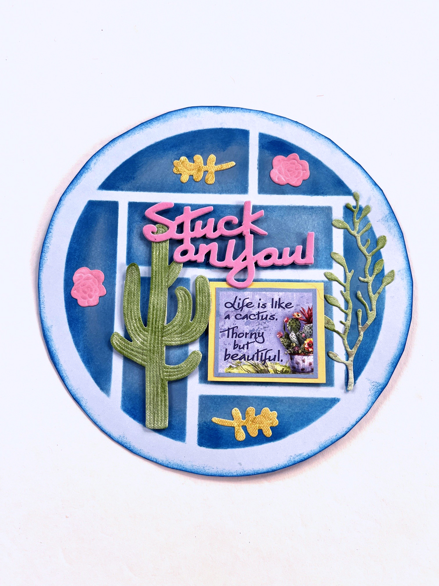 Sue Vintage Rose ink on the flowers. Attache the circle to the card front, matching the bottom of the circles.