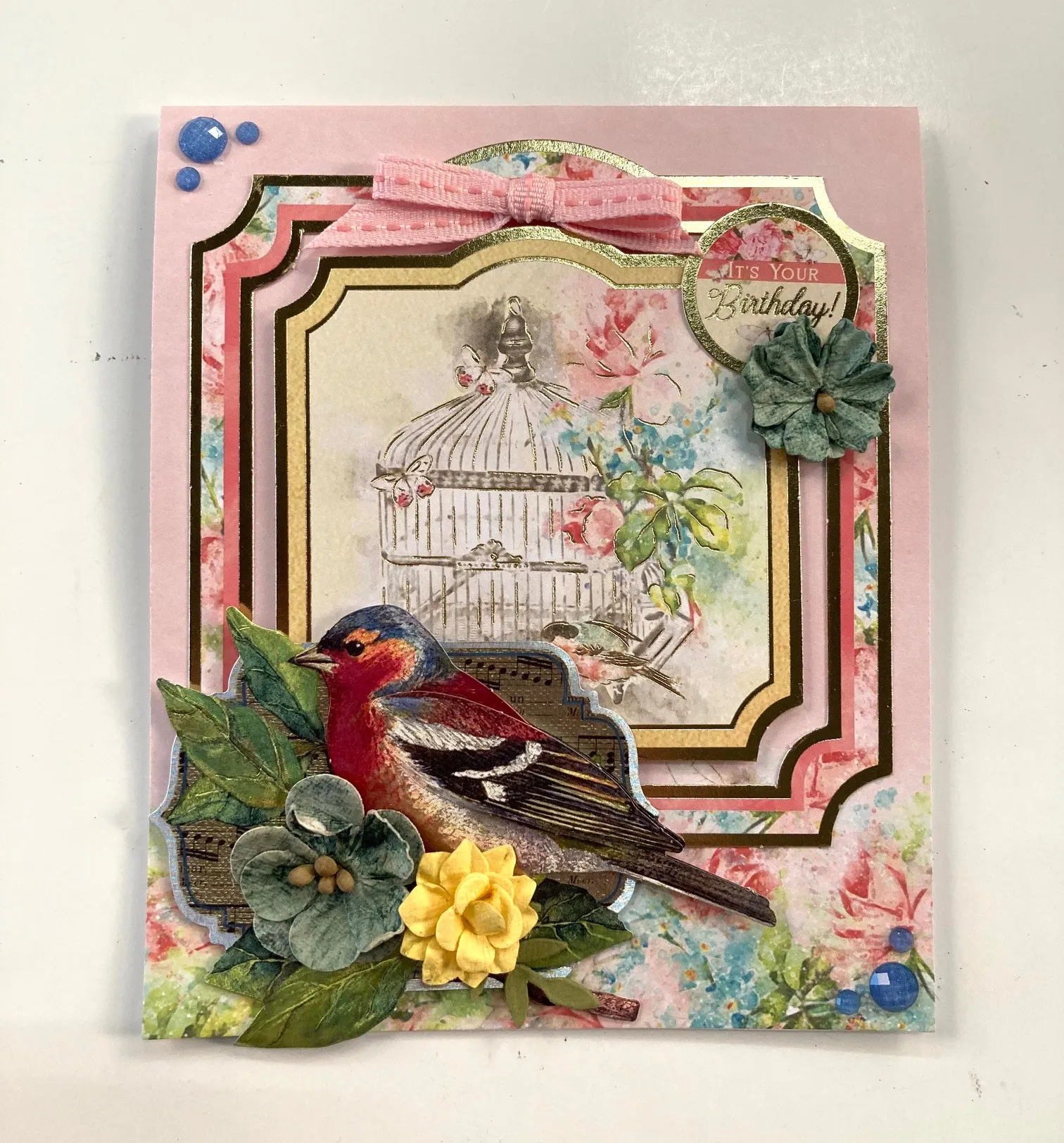 Card inside: Cut a 5"x6" piece of the corresponding bird cage insert and glue to the reverse side of card front.