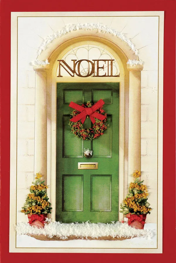 Cut the “Noel” sticker from the Dazzle™ sheet and color with the StazOn® inkpad by blotting with the inkpad surface. Let dry and adhere above the door.