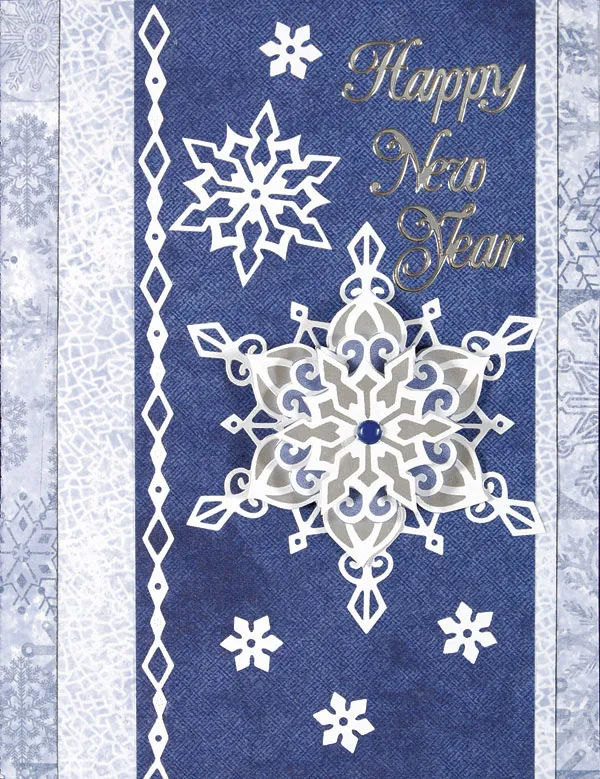 Use the transfer sheet to place the greeting in the upper right corner and other snowflakes around the focal, as shown.