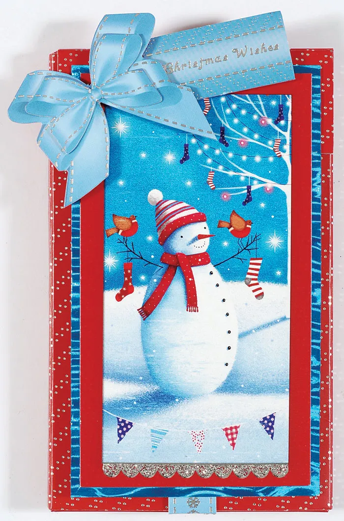 Use foam tape between pyramage layers of the Hunkydory The Gift of Christmas “Stocking Surprise”. Pop out the Santa/stocking image from the front of the gift box and set aside for step 2.