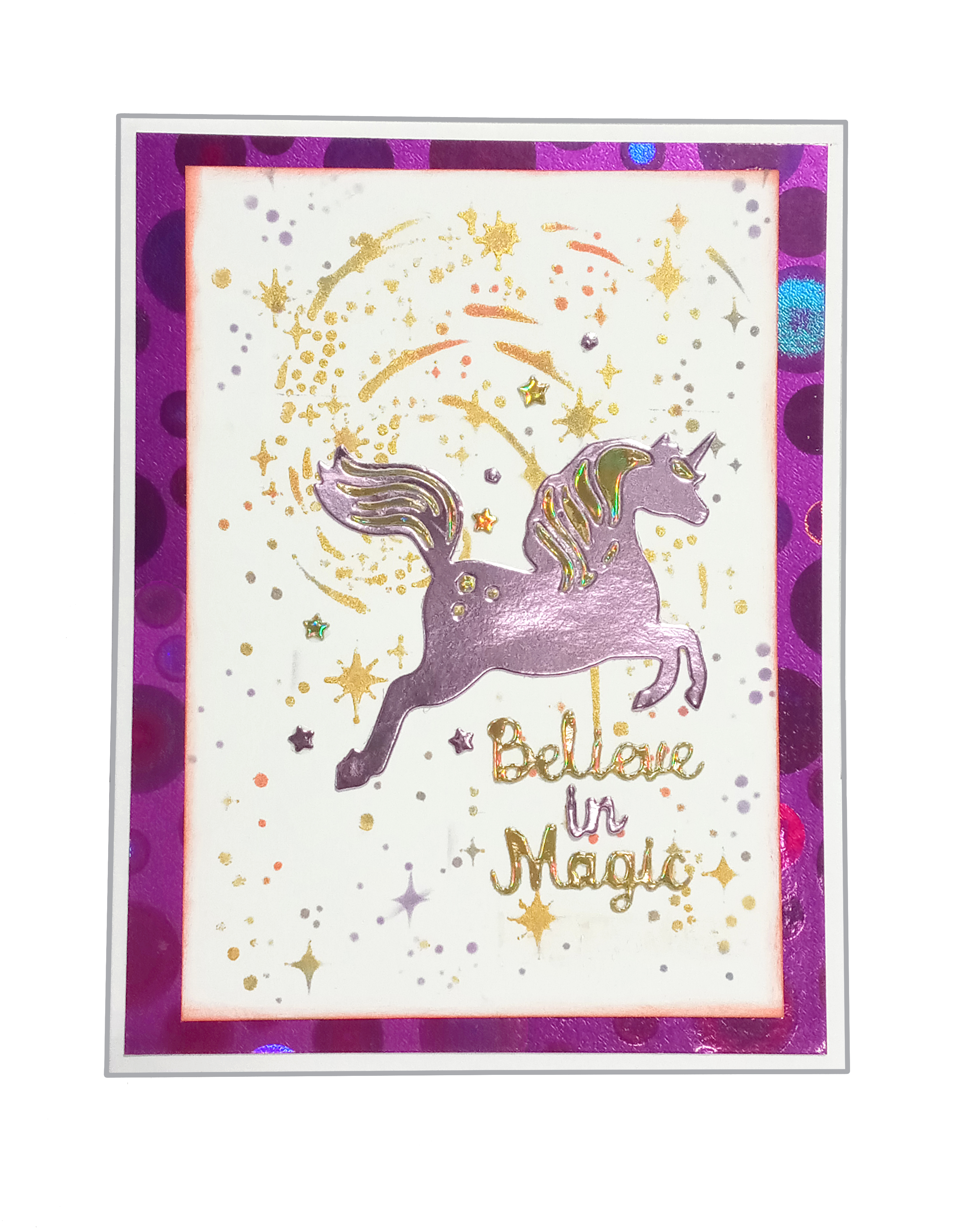 Mat the white cardstock with Circle Purple Holographic and glue to the card front.