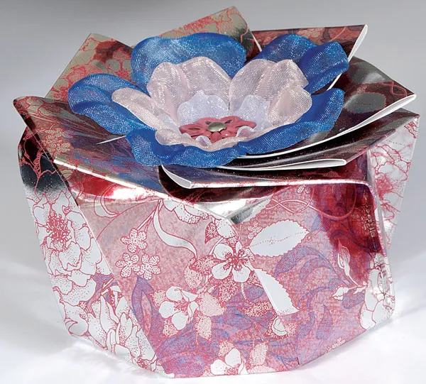 For a flatter top to the box, push in the flaps and top with layered sheer flowers.