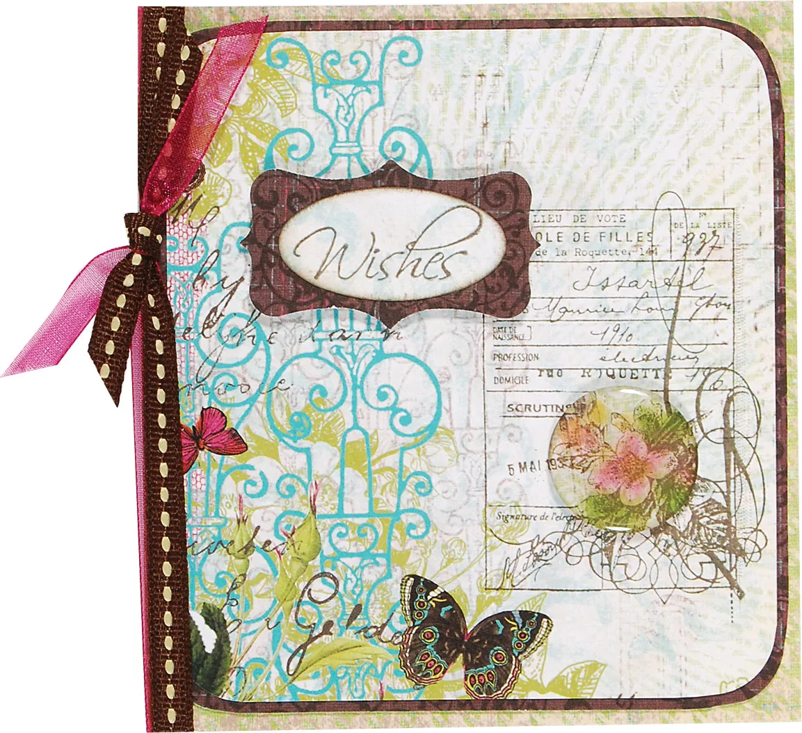 Tie 1/4” brown stitched ribbon and 1/4” pink sheer ribbon around the left side of the card and tie knot. Trim the ends.