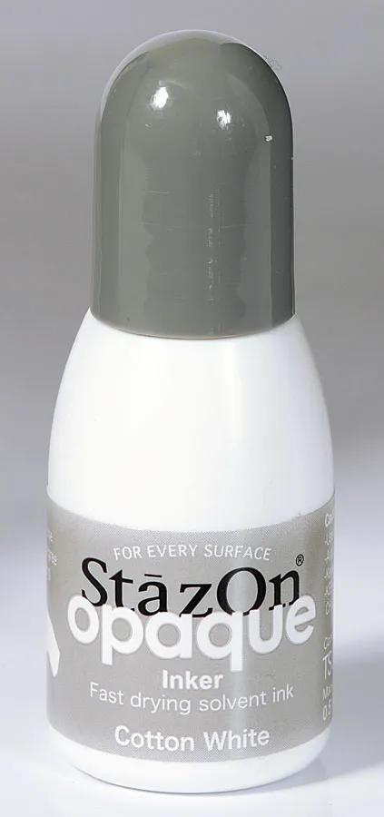 Opaque white ink in a re-inker! Reuse your StazOn white opaque ink pad and always keep it ready for stamping with this handy refill bottle. This ink is perfect on both porous and smooth surfaces, including metal, plastic, wood, leather, glass, and all paper finishes. Refill is .5 oz—enough to keep your pad prepared for all your crafting projects. If you also need the pad, see the StazOn White Opaque ink pad (link). Use this ink for long-lasting stamped impressions or simply to add a soft white edge to surfaces. From Tsukineko.