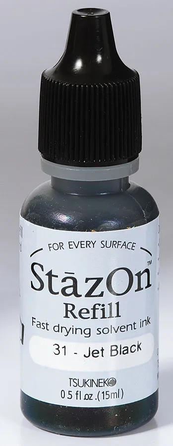 Keep your Tsukineko StazOn Jet Black ink pad performing like new with this convenient re-inker. Designed to refresh and extend the life of your favorite solvent-based ink pad, this refill delivers rich, deep black ink that adheres beautifully to a wide range of surfaces.