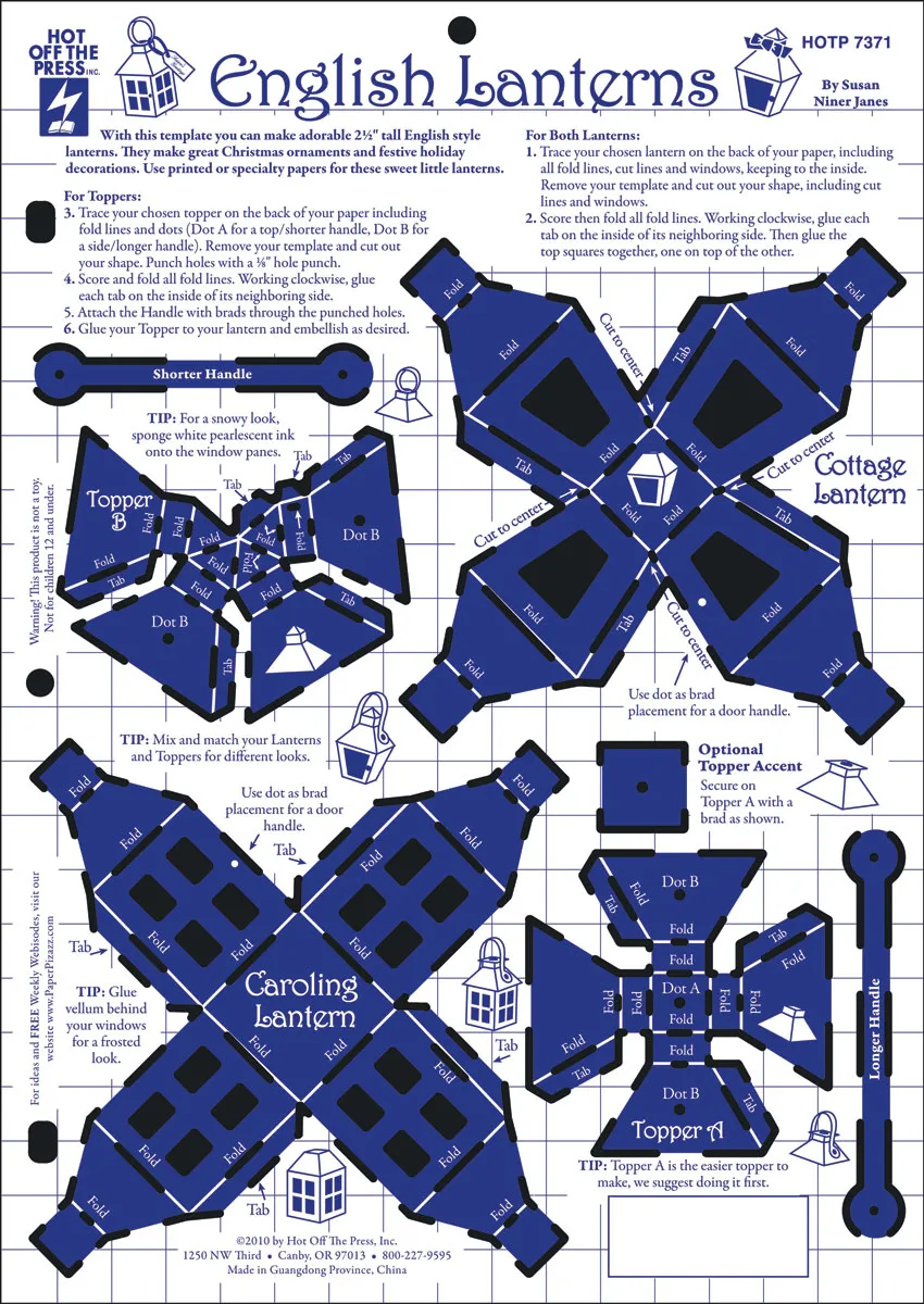 Lovely lanterns! These cute little lanterns light up any celebration, from showers and tea parties to Christmas decorations and ornaments; they'll be a huge hit! You can custom make them to match your theme and use them in multiple ways. String them along doorways, ceilings or railings, hang them from tree branches or windows. They make great party favors of holiday gifts too.