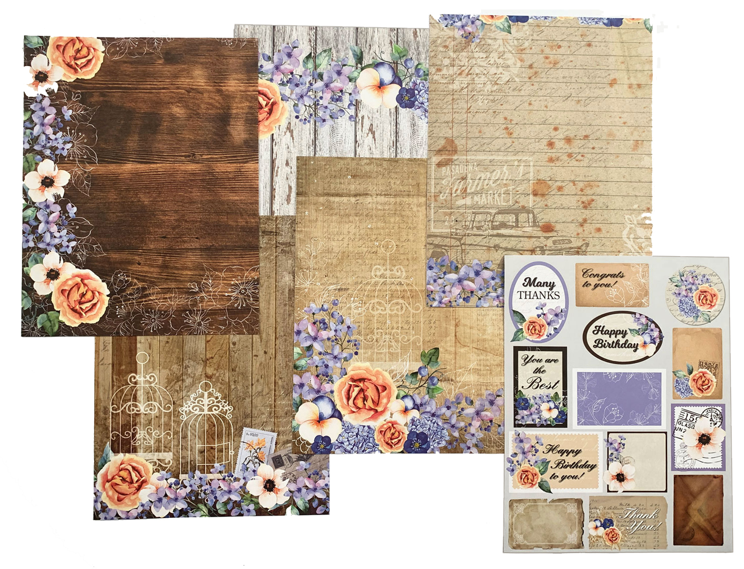 This set of charming papers are filled with beautiful florals, distressed backgrounds, bird cages, and stunning colors. Includes 12 double-sided sheets of 8.5"x11" paper that are perfect for card making! Papers are acid & lignin free! Paper Wishes Exclusive!