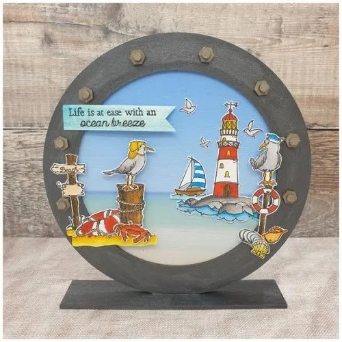 Bring seaside charm to your handmade cards, scrapbook pages, and journal layouts with this beautifully illustrated coastal-themed stamp set.