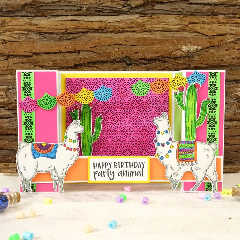 8 Fiesta Strips A6 Background Clear Stamp Set from Hunkydory! This fun filled 8 piece stamp set features different border strips including cute motifs of maracas, guitars, cactus and more! Stored on a 4.1"x5.8" sheet.