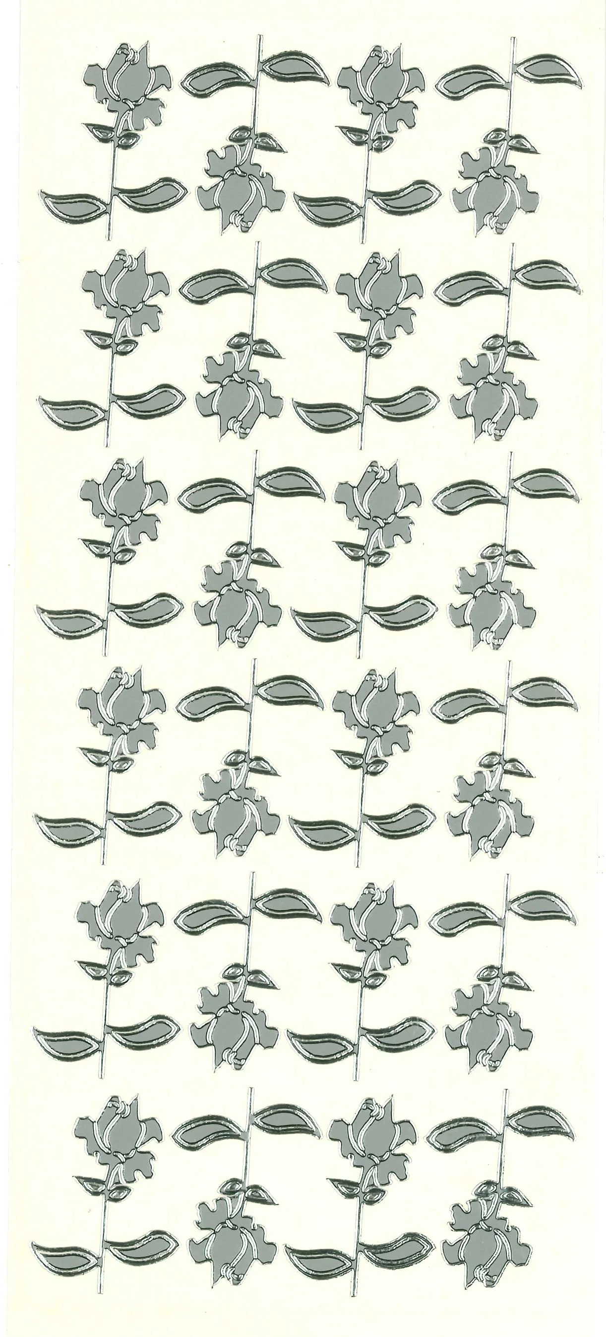 24 Individual Flowers Silver Peel Off Stickers from Mark Richards Collection! This 4"x9" sheet features 24 individual flowers! The perfect way to personalize your craft projects. Just simply peel and stick! This package contains one 4"x9" sheet of stickers. 24 images in silver finish.