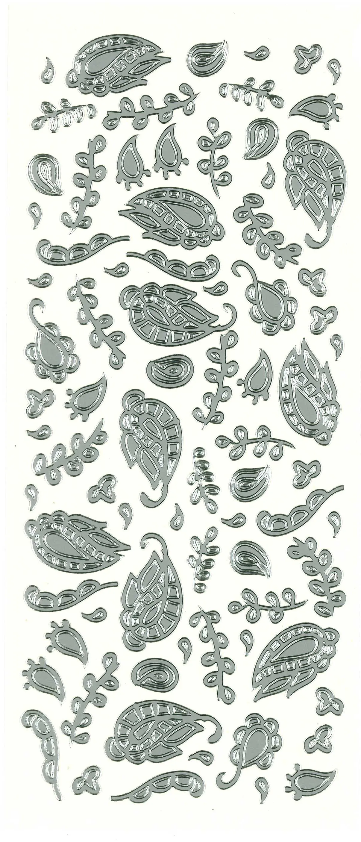 78 Graphic Leaves Silver Peel Off Stickers from Mark Richards Collection! This 4"x9" sheet features decorative leave in a variety of sizes to enhance your craft projects! Just simply peel and stick! This package contains one 4"x9" sheet of stickers. 78 images in silver finish.