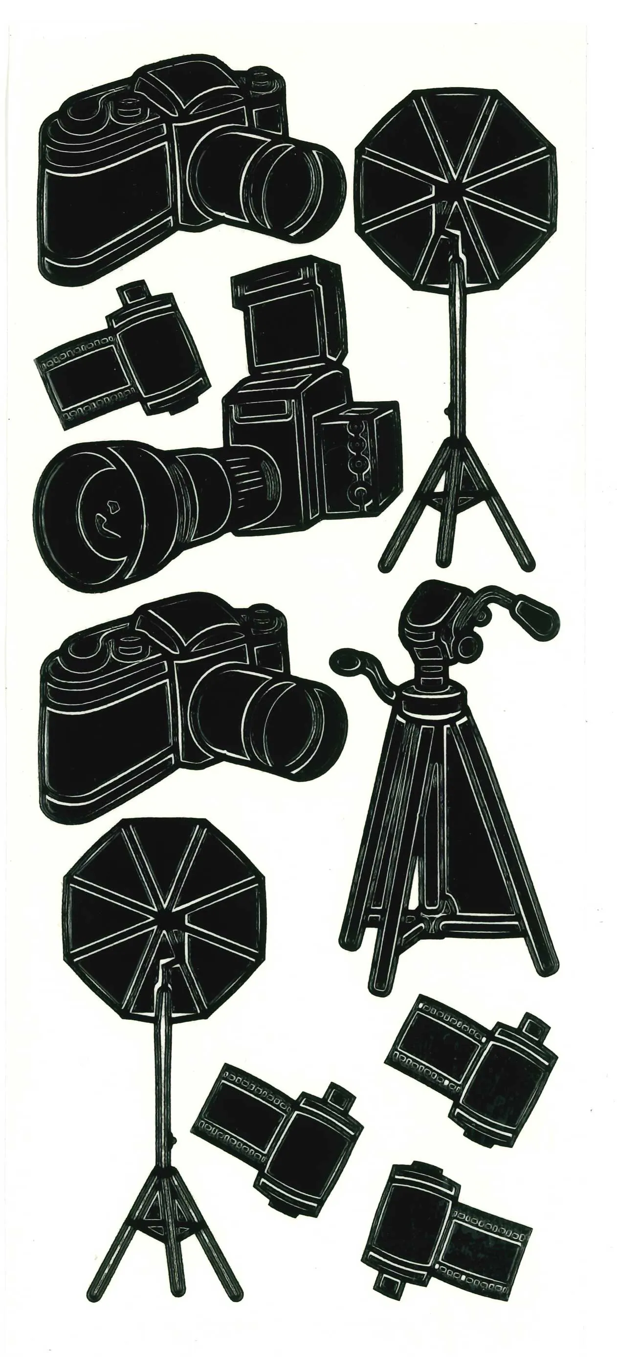 10 Photography Black Peel Off Stickers from Mark Richards Collection! This 4"x9" sheet features photography equipment to decorate your craft projects! Just simply peel and stick! This package contains one 4"x9" sheet of stickers. 10 images in white finish.