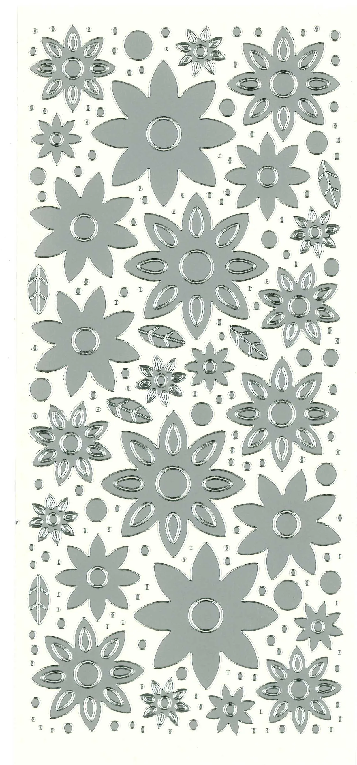 Silver Flowers Peel Off Stickers from Mark Richards Collection! This 4"x9" sheet features 25 flowers, leaves and jewel dots in various sizes to decorate your craft projects. Just simply peel and stick! This package contains one 4"x9" sheet of stickers.