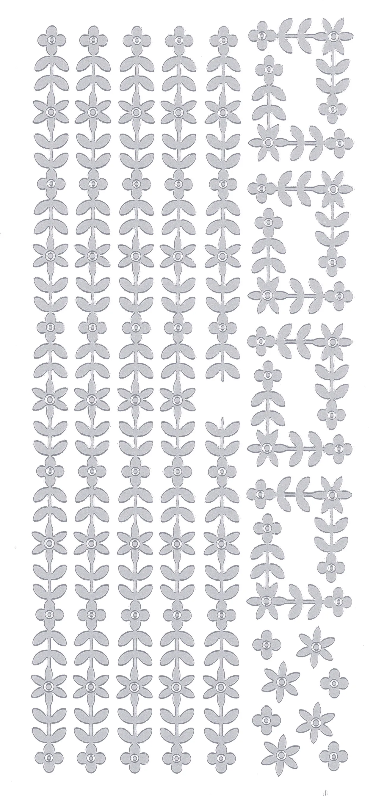 This 4"x9" sheet features a variety of flower & leaf borders to decorate your craft projects. Just simply peel and stick! This package contains one 4"x9" sheet of stickers. 18 images in silver finish.