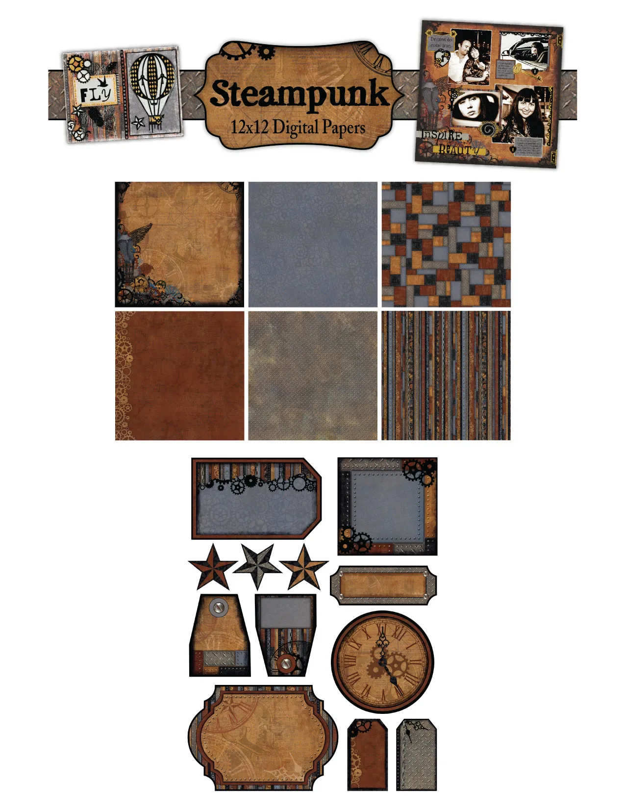 Steampunk 12"x12" Digital Papers from Hot Off The Press!