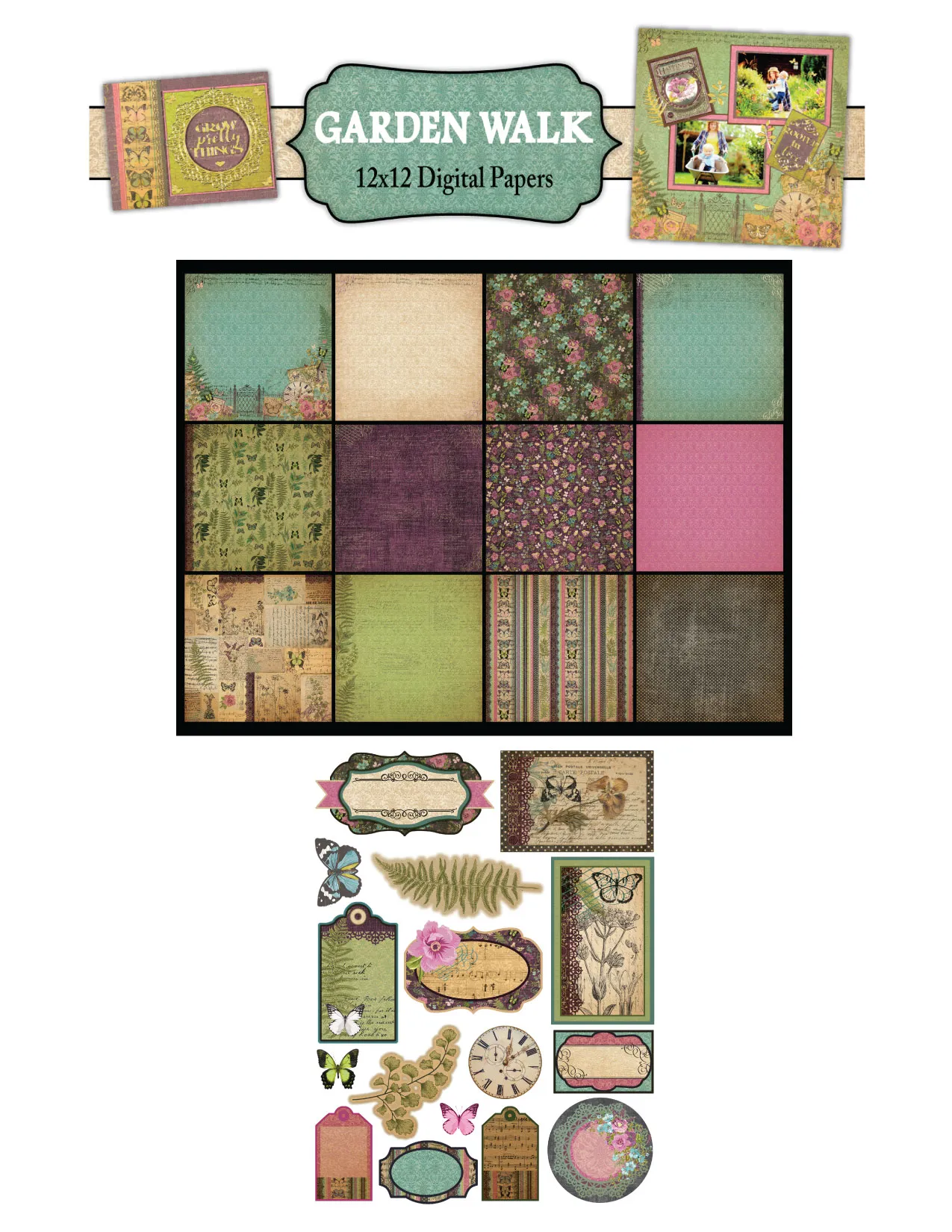 Garden Walk 12"x12" Digital Papers from Hot Off The Press!