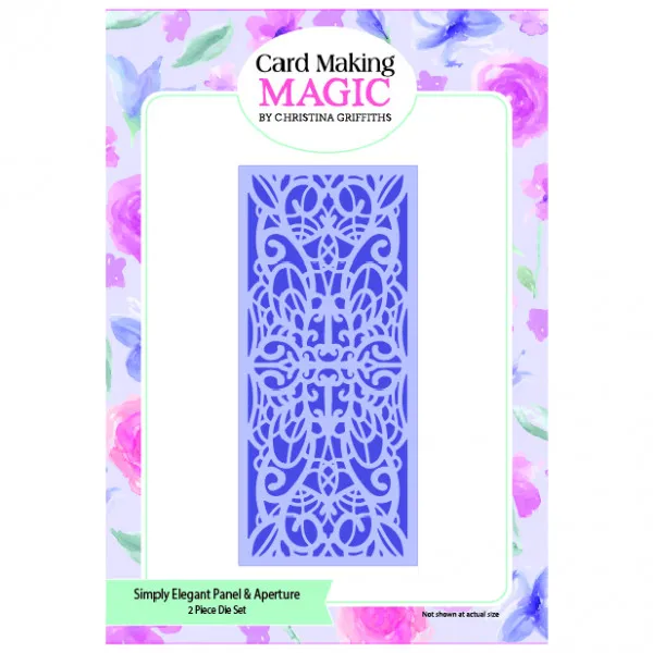 This 2 piece die set features a elegant panel and aperture. They will work perfectly with our Slim Line Cards & Envelopes. Designed by Christina Griffiths for Card Making Magic. Exclusive to Paper Wishes.