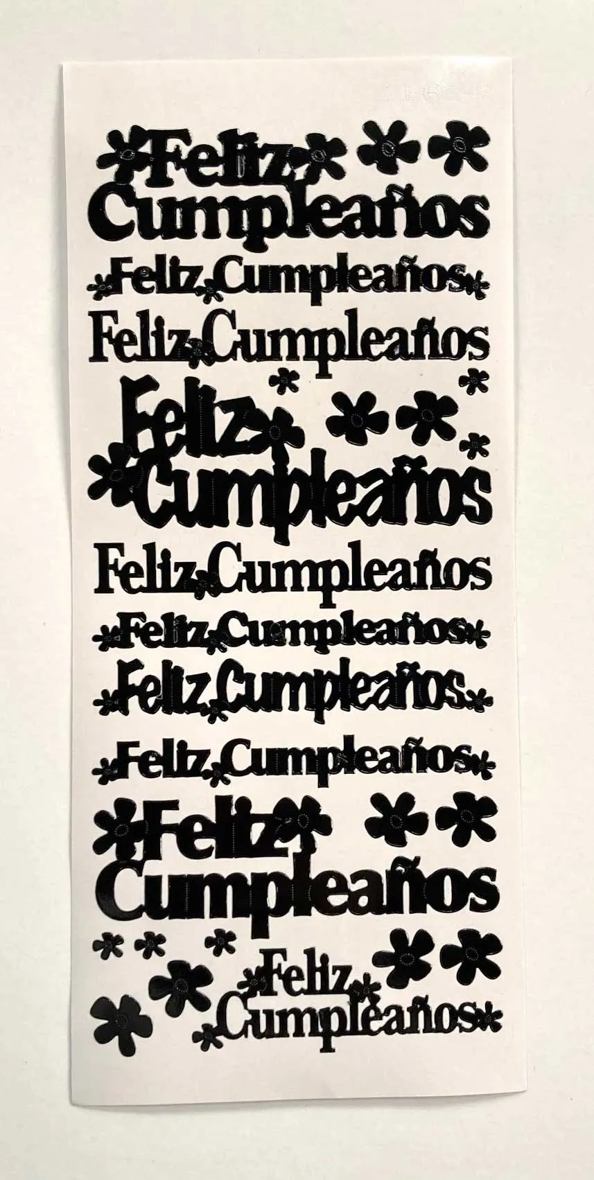 Happy Birthday in Spanish! These are a customer request and our first Spanish Dazzles™. With these Dazzles™ stickers you get the look of a heat-embossed image, but all you do is peel and stick. The ideal embellishment for any project, these durable vinyl stickers add a finished look to your accent your cards, scrapbook pages, and paper crafting! Paper Wishes Exclusive!