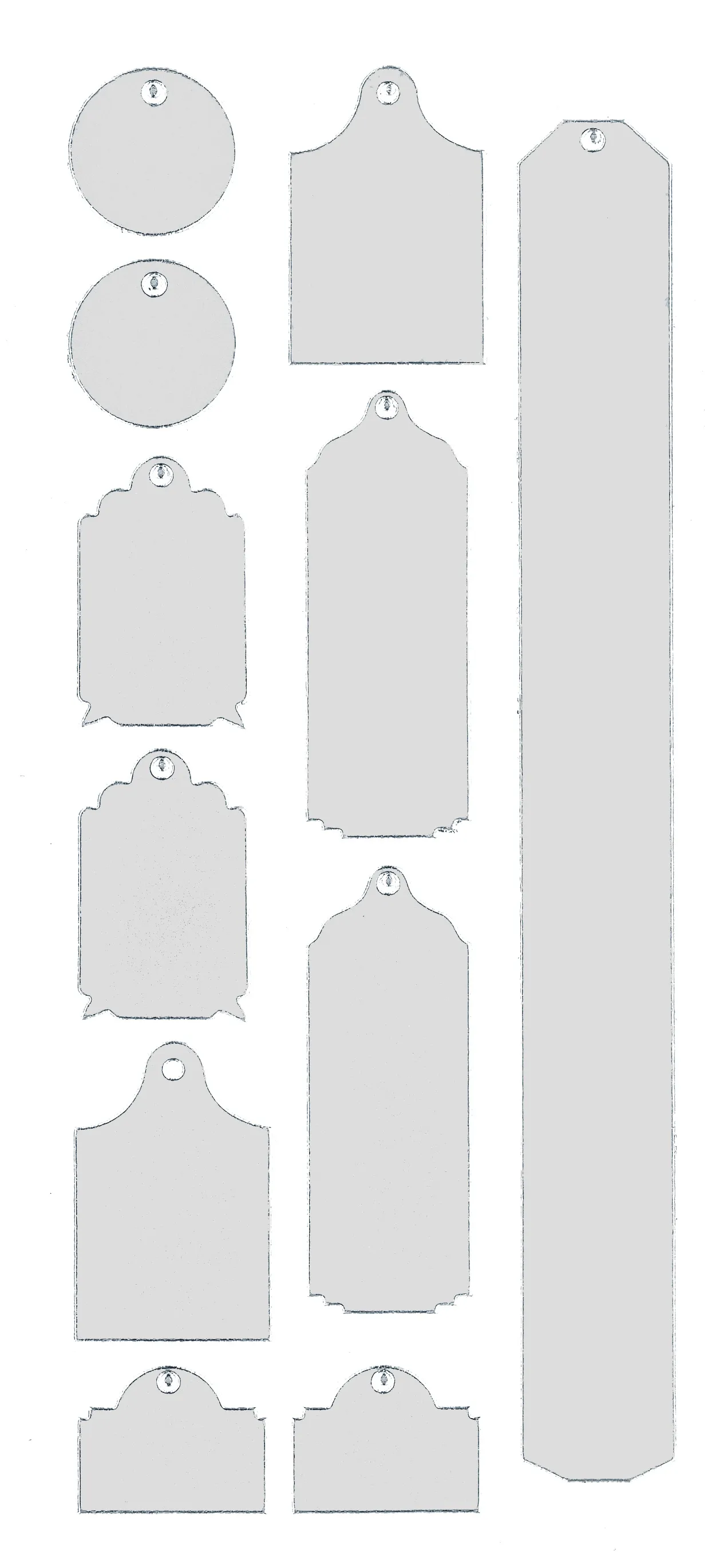 This 4"x9" sheet features tags in a variety of shapes and sizes to enhance your craft projects! Just simply peel and stick! This package contains one 4"x9" sheet of stickers. 11 images in silver finish.