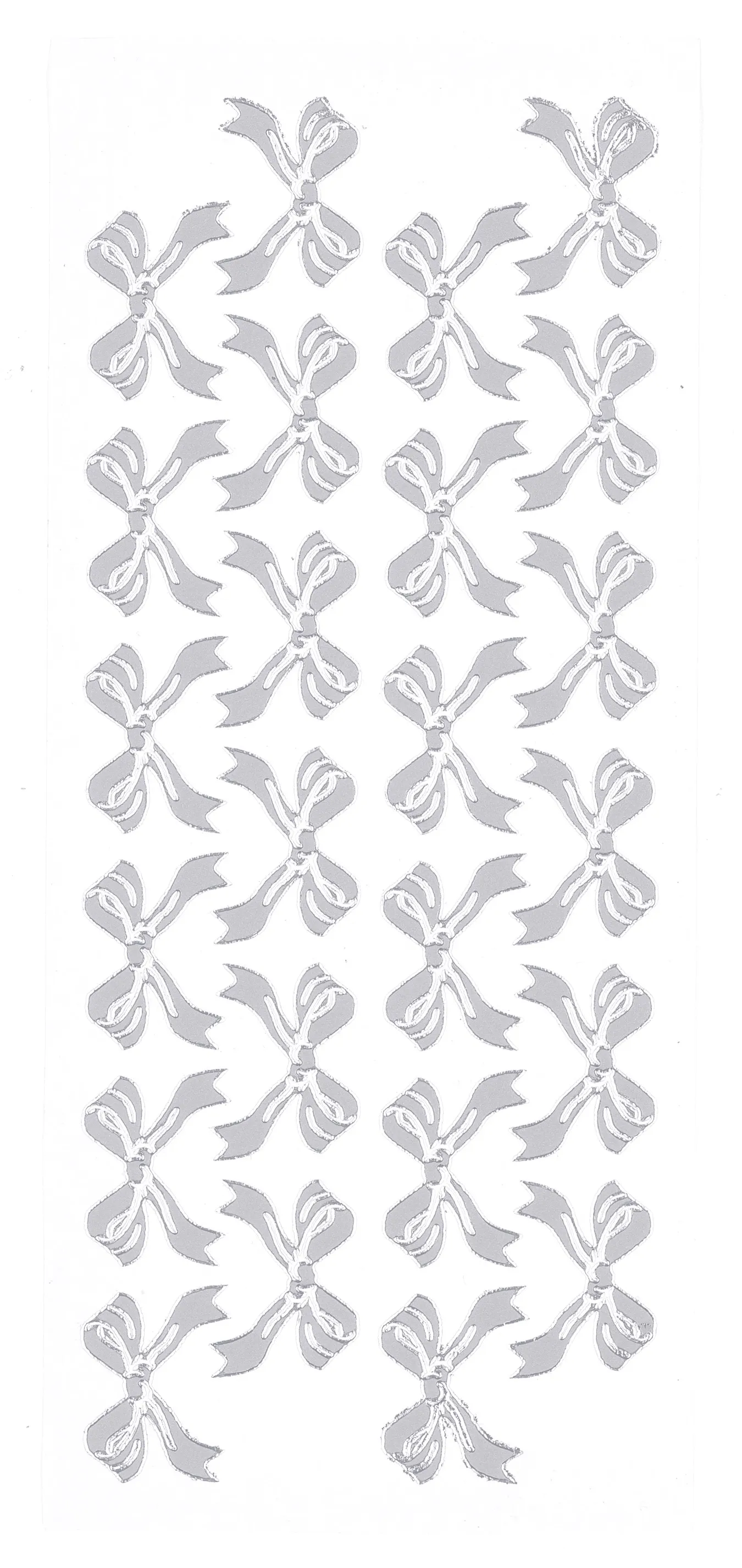 This 4"x9" sheet features bows to enhance your craft projects! Just simply peel and stick! This package contains one 4"x9" sheet of stickers. 24 images in silver finish.