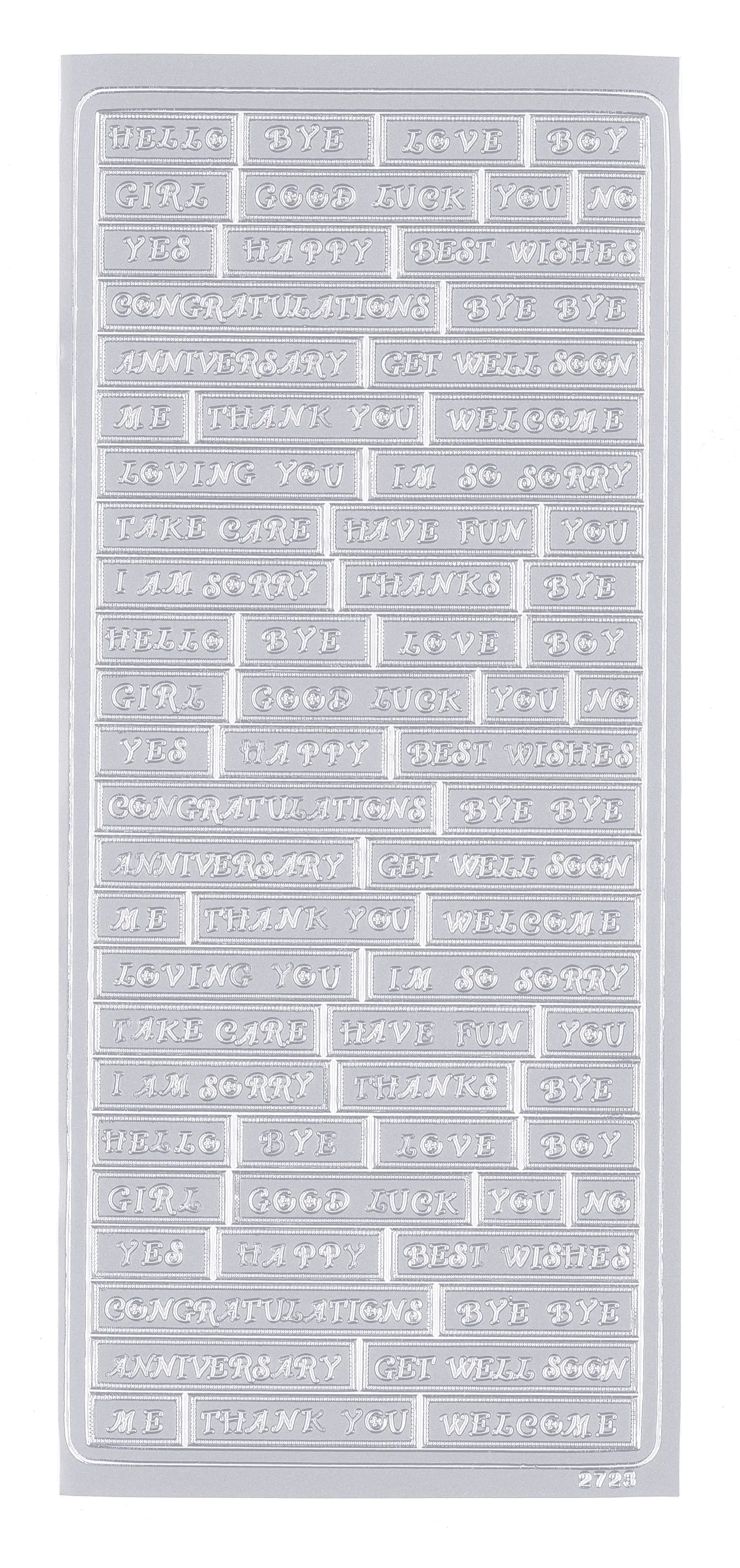 This 4"x9" sheet features engraved greetings to enhance your craft projects! Just simply peel and stick! This package contains one 4"x9" sheet of stickers. 70 images in silver finish.