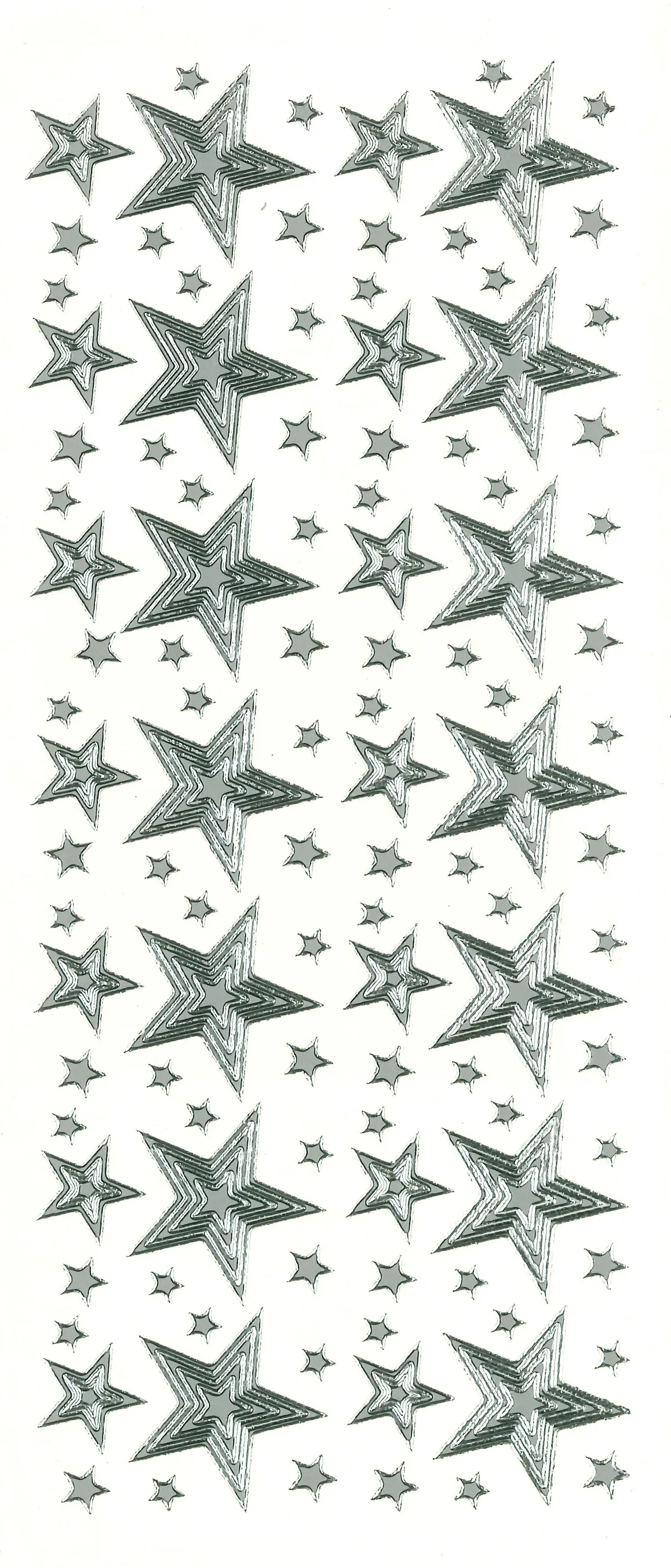 This 4"x9" sheet features stars of various sizes to enhance your craft projects! The perfect way to personalize your craft projects. Just simply peel and stick! This package contains one 4"x9" sheet of stickers. 110 images in silver finish.