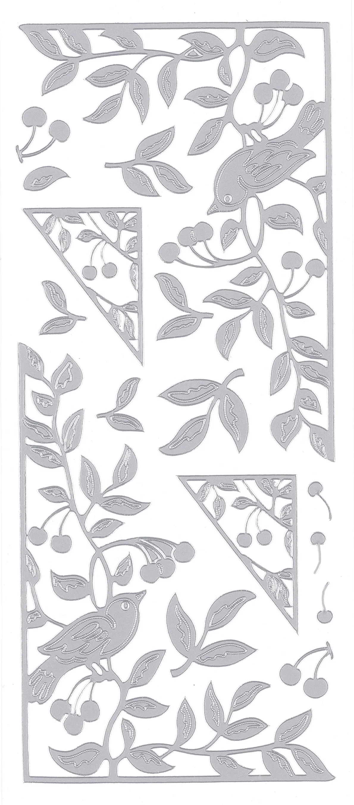 This 4"x9" sheet features beautiful bird corners & and additional accent leaves to decorate your craft projects. Just simply peel and stick! This package contains one 4"x9" sheet of stickers. 16 images in silver finish.