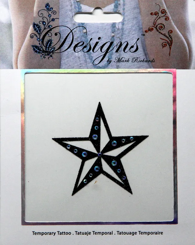 This beautiful star with blue crystals sticker adds layers of dimension & style in minutes. The package says "temporary tattoo" but they are perfect for papercrafting! Size: 2" wide