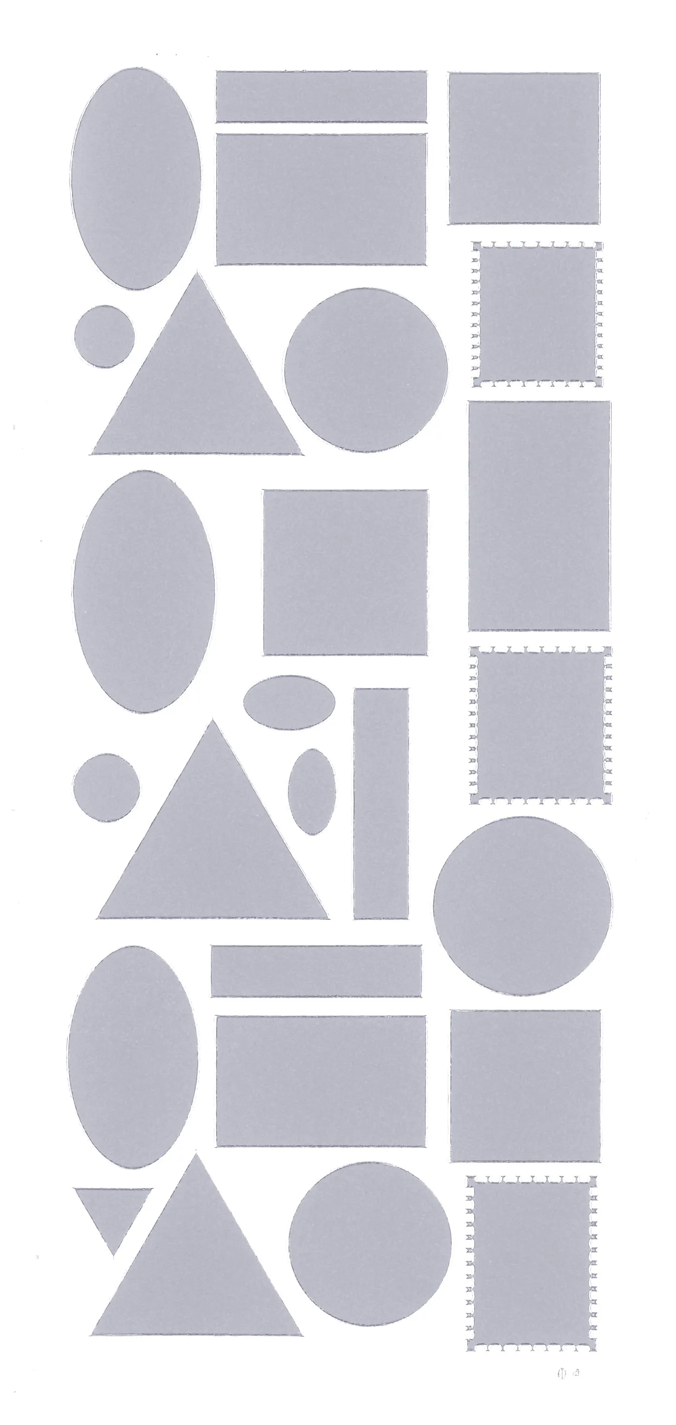 This 4"x9" sheet features geometric tags in a variety of shapes and sizes to enhance your craft projects! Just simply peel and stick! This package contains one 4"x9" sheet of stickers. 26 images in silver finish.