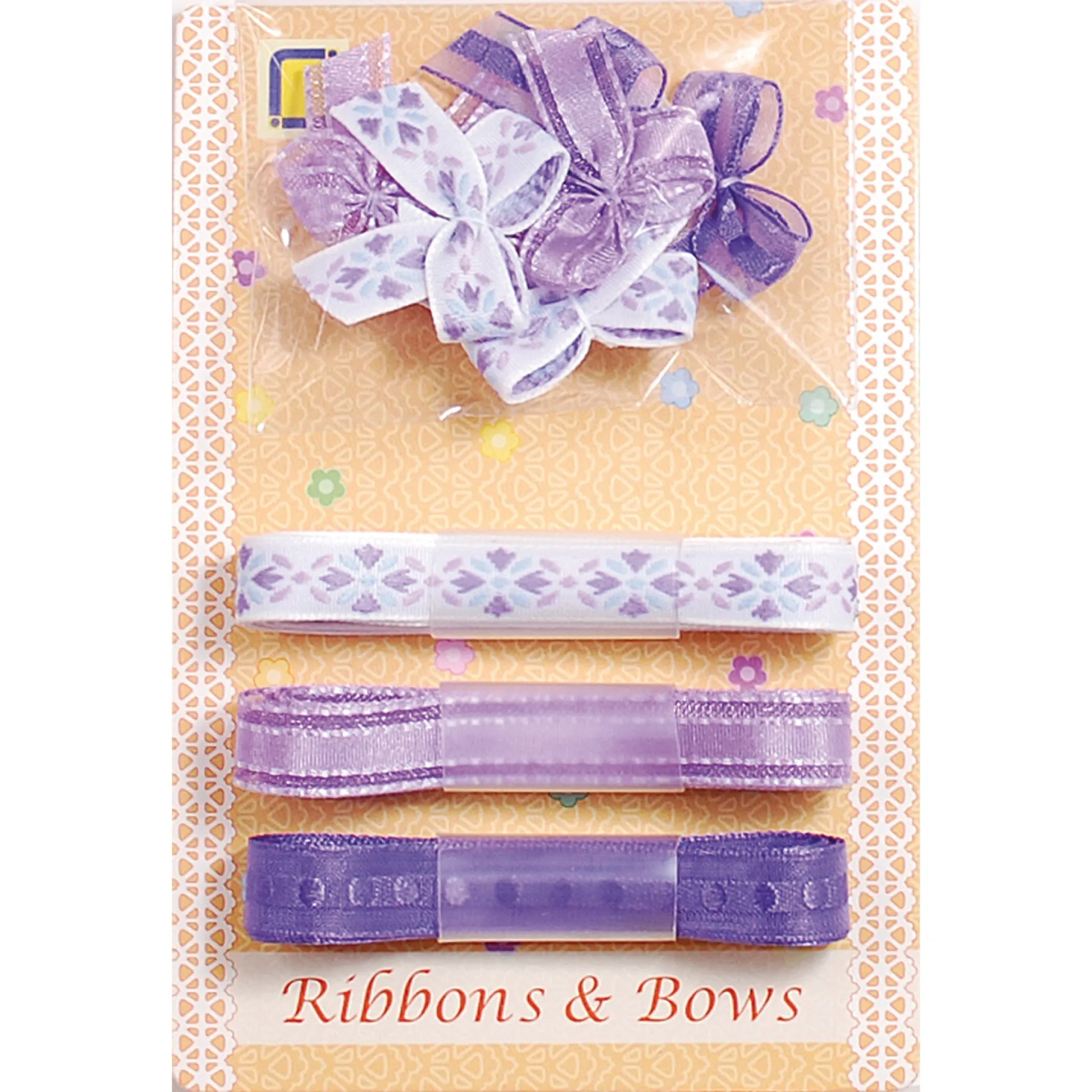 This collection includes 1 yard each of 3 different purple ribbons and 6 coordinating bows. Perfect for card making, scrapbooking, and other papercrafts. They're the perfect size for bows, knotted lengths, loops, and more. As embellishments, these ribbons are perfect! You'll get over 36" each of 3 different 1/2" wide ribbons and 6 bows (3"x2").