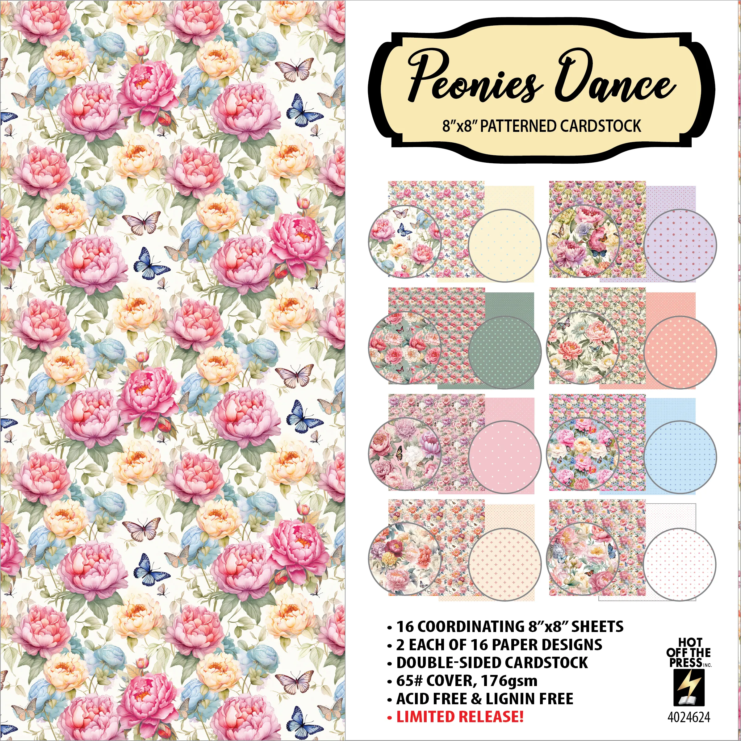 Peonies Dance 8x8 Papers, limited edition from Hot Off The Press!