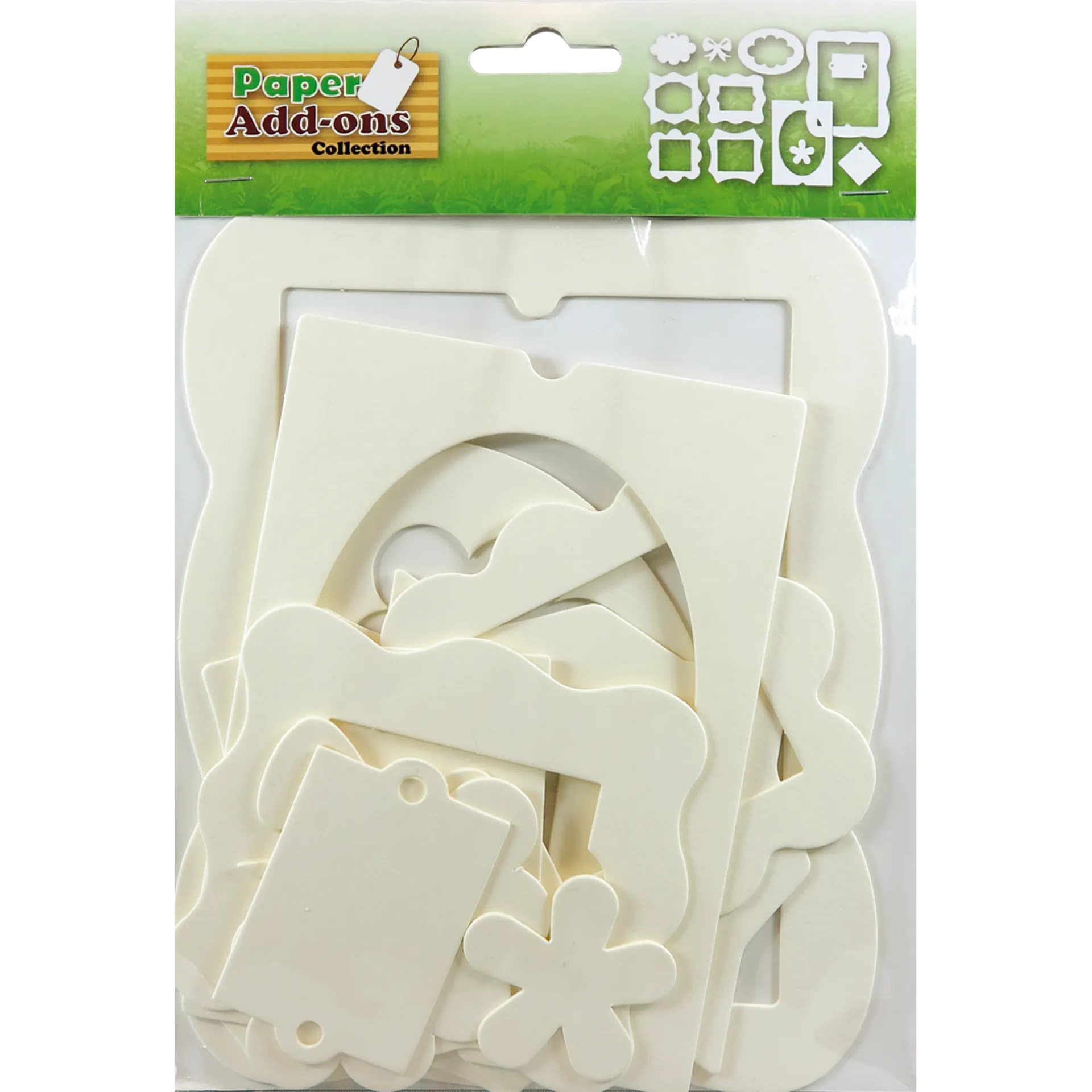 This collection contains 12 die-cut shapes of 1 mm thickness, including the largest frame measuring 5 3/8"x6 7/8". Additionally, you'll find 2 frames sized 3 1/4"x3 3/4", 2 square frames at 3 1/2", an oval frame measuring 3"x4 1/4", and a rectangle with an oval inside, sized 3 7/8"x5 1/2". Other shapes range from 1 1/2" to 3" wide. These die-cuts are perfect for coloring with markers or ink pads or paint and can be cut apart to fit your card making and scrapbooking project needs.