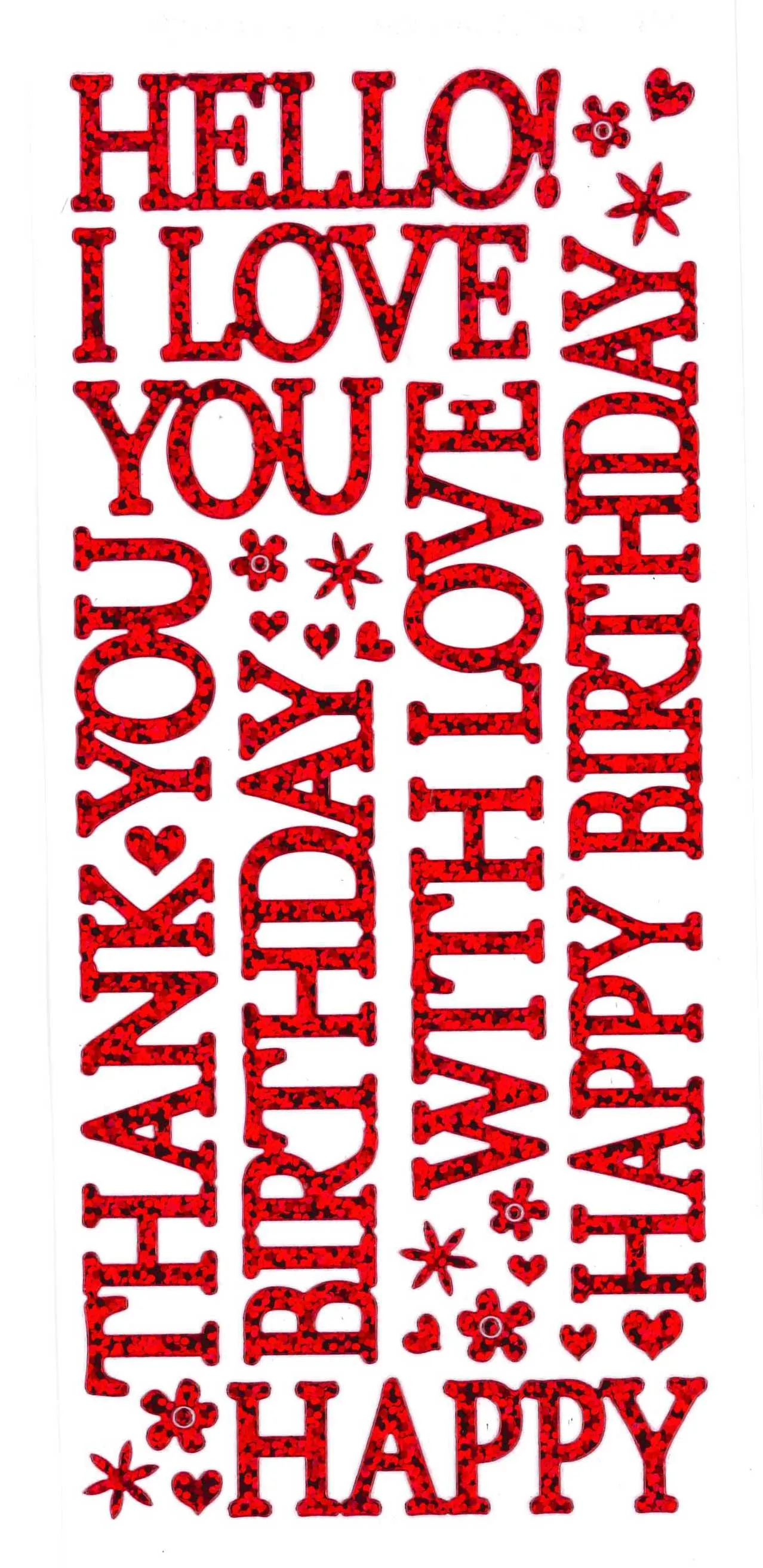 set includes 5 red BIG Greetings: Thank You, Happy Birthday, With Love,
