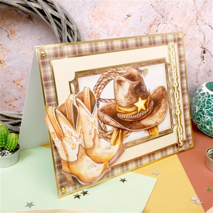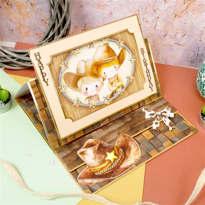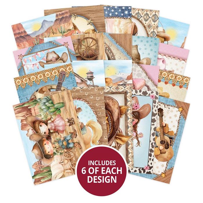 The 4.1"x5.8" Little Book of Wild West features 120 pages with 6 sheets in each of 20 designs. Bursting with quirky and colorful Country and Western-themed watercolor artwork, this charming book is filled with heartwarming character designs and rustic illustrations, making it a fantastic choice for recipients of all ages. Inside, you’ll discover cowboys and cowgirls, desert landscapes, acoustic guitars, cowboy hats, cacti, sheriffs, cowboy boots, and more! Coordinating gingham, cow print, frayed denim, and wood patterns add an extra touch of Western charm, ensuring you’ll find the perfect image for any card making and scrapbooking occasion!
