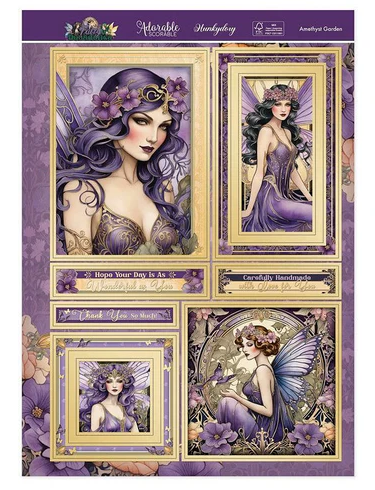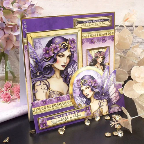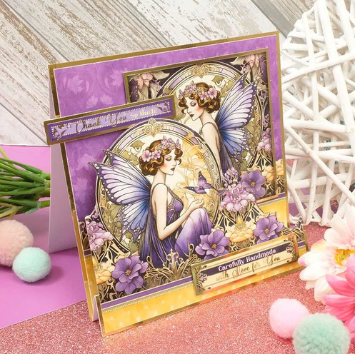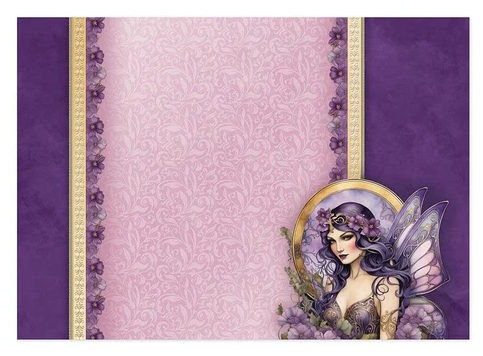 This set includes a 300gsm foiled and die-cut topper sheet, a 350gsm foiled cardstock measuring 8.3"x11.7", and a 350gsm printed cardstock measuring 8.3"x11.7", all featuring delightfully decorative fairy artwork framed with rich gold foiling. The enchanting fairies are set against stunning floral backdrops, with a jewel-toned color palette of emerald, amethyst, onyx, and pink sapphire. Filigree patterns, florals, swirls, and marbled textures enhance the overall design, creating a truly decadent look. With matching foiled frames, elegant filigree details, and decorative accents, this set is perfect for year-round card making and scrapbooking. It also includes border strips, tags, and button toppers for those finishing touches, making it a versatile and essential addition to any collection.