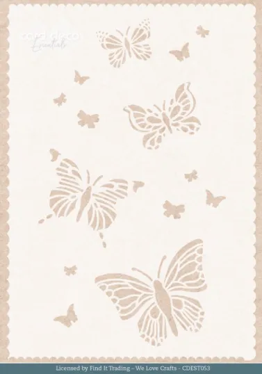 This 5.8"x8.3" Flutters Stencil by Find It Trading is a versatile drawing stencil designed for creating intricate butterfly-themed designs on your crafting projects. This stencil features delicate, fluttering butterflies in various sizes, ideal for adding an elegant and whimsical touch to your creations. Use it with inks, markers, pastes, sprays, and other crafting mediums to achieve stunning backgrounds and decorative elements. Perfect for card making, scrapbooking, journaling, tags, and mixed media art, this stencil allows you to effortlessly incorporate graceful butterflies into your designs!