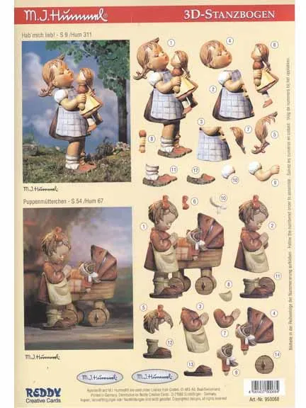 These 3D sheets require no cutting, just press out the shapes and layer them with foam tabs or 3D glue according to the number. They are so fast and look perfect every time. Great for scrap booking or card making. Each sheet will make 2 3D images.