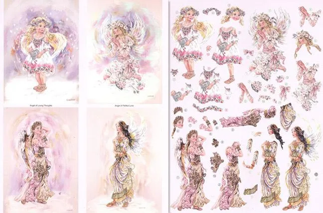 Angel of Loving Thoughts, Angel of Perfect Love, Angel of Answered Prayer and Angel of Comfort. Just press out the pieces and layer them according to the numbers using foam tabs or 3D glue between layers. Great for Cards, Scrapbook pages and for your Mini Albums. For added value use the base image on their own to create an additional 4 cards/projects.