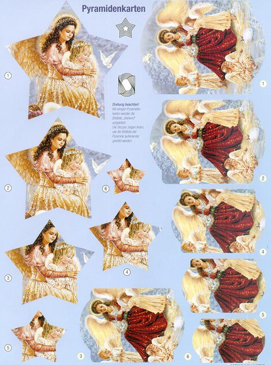 These pyramid sheets are very beautiful, they come with 2 different sheets per package with 2 separate images on each. Each image has a unique shape and are put together by twisting slightly. Wonderful for cards or scrapbook pages, easy to create, simply press out and layer with foam tabs or 3d glue according to numbers.
