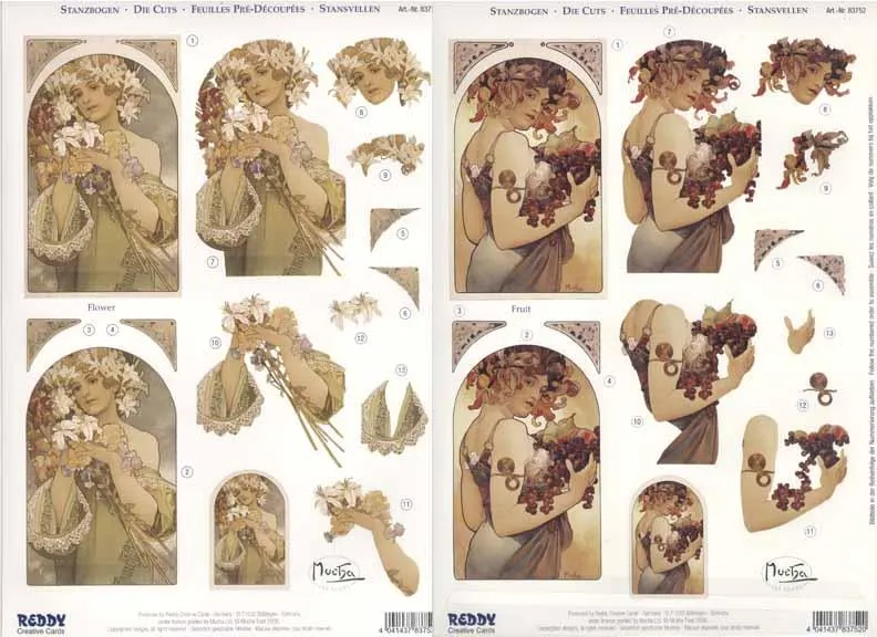 These beautiful 3D Precut images are by the famous artist Alphonse Mucha. They have two 3D images that are easy to assemble using foam pads or 3D glue and following the numbers. Wonderful for large cards or scrapbook pages.