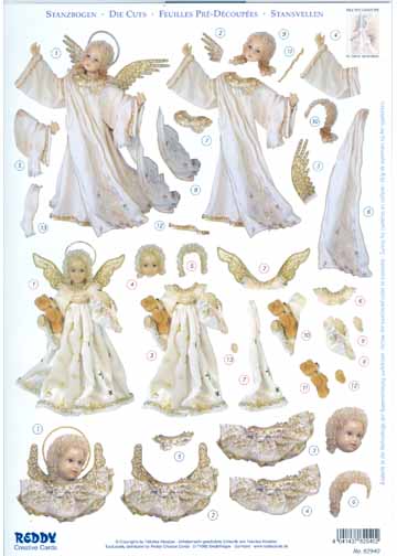 This 3D Precut step by step print has doll like angels in elegant gowns. They are easy to create beautiful cards or scrapbook pages. Just press out and layer the pieces according to the numbers using foam tabs or 3D glue. 3 separate images per sheet.